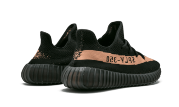 The edition Black Copper consists of a black primeknit upper decorated and crossed by a band orange pale. The SPLY-350 registration specific to the model is registered on this band. THE design refined of this Yeezy Black Copper is based on a black sole with orange reflections, equipped with technology Boost.