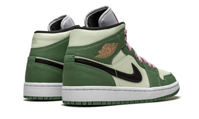 L Air Jordan 1 Mid Olandese Green costituito da pelle morbida con una base bianca associata a sovrapposizioni verde. Alcuni tocchi di rose A livello di logo Ali E lacci indicato. L dispensa Blanche associato a a suola verde. Black Side Swoosh e rivestimento interno finalizzare il design Di Peter Moore.