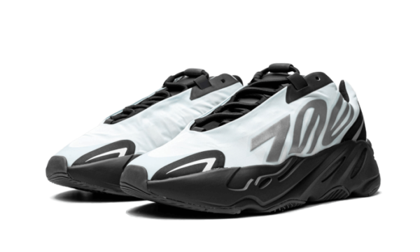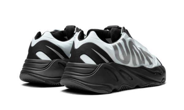 La Yeezy 700 MNVN Blue Tint presenta una base sintetica azzurra con un vistoso marchio 700 grigio sul pannello posteriore, accenti riflettenti sul parafango e sul tallone e sovrapposizioni nere per abbinare la suola BOOST.