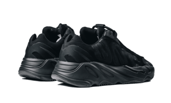Il Yeezy 700 MNVN Triple Black presenta una tomaia monocromatica nera e una tomaia diversa dalla versione V1 e V2 versioni, questa volta con il nylon. I vari inserti di materiale sono anche sostituiti dal marchio “700 ” sui lati laterali. La suola mantiene la sua forma originale e la tecnologia .Boost