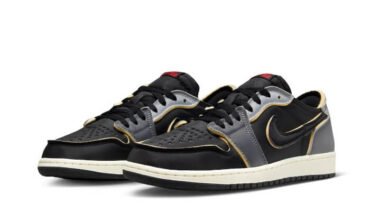 LàAir Jordan 1 Low OG Ex fumo scuro grigio offre una base in Nylon balistico nero, offrendolo aumento della resistenza. Per accompagnarlo, ci sono pannelli in diversi sfumature di grigio Mentre mousse è lasciato visibile su diversi contorni. Alcuni Note rosse In termini di lingua e sole portano un tocco di colore nel complesso mentre una suola condivisa tra la crema e l’intersuola nera punteggia tutto.