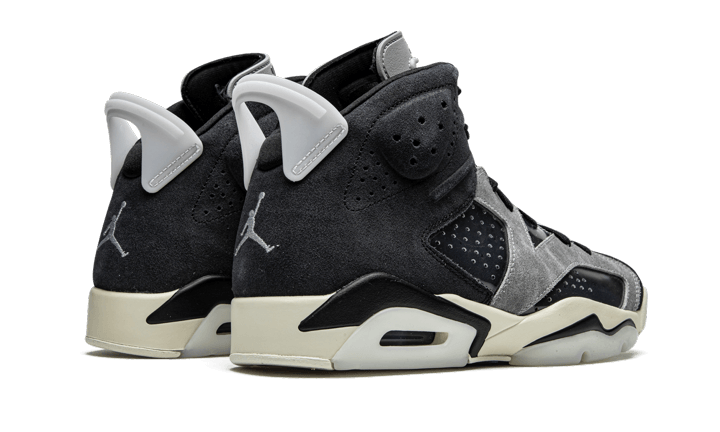 There Air Jordan 6 Tech Chrome sports a black and gray suede upper. There are several elements such as gray panels and Translucent TPU In terms of midsole and Heel Tab. Classic branding elements are present with the logo Jumpman Metallic gray in color affixed to the tab and heel. A white midsole finalizes the creation!