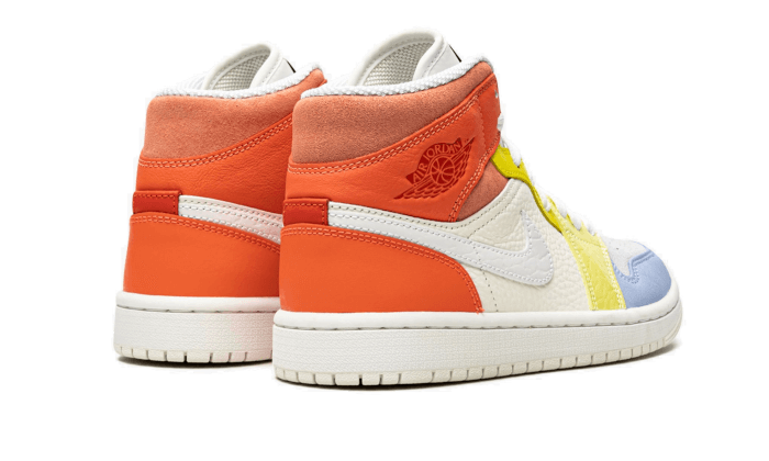 L? Air Jordan 1 Mid Al mio primo allenatore presenta una base in pelle seme Bianco, arricchito da diverse tonalit? di colori vivaci. C’? GIALLO sugli occhielli, blu sul toebox e a rose pompelmo sul tallone. UN Swoosh Il tono bianco su tono e l’intersuola bianca portanoeleganza al modello.